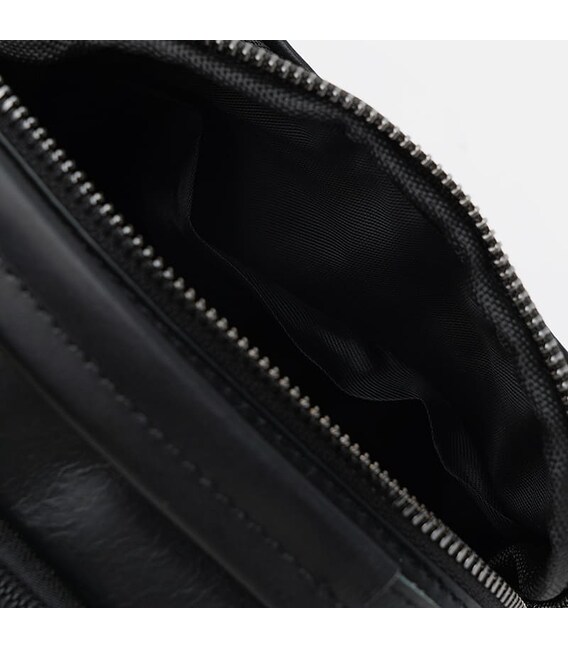 Чоловіча шкіряна сумка має 2 відділення, що закривається на блискавку. З лицьового боку 3 кишені, з зовнішньої-1 кишеня, всередині 2 кишені для телефону та дрібниць. Підкладка-текстиль. Незнімний плечовий ремінь із текстилю, ручка з натуральної шкіри.