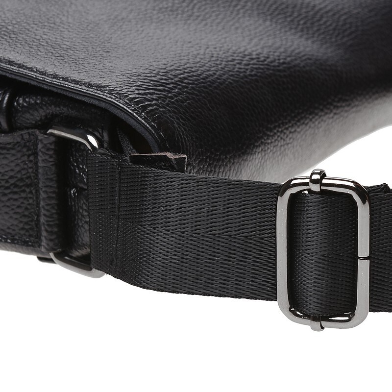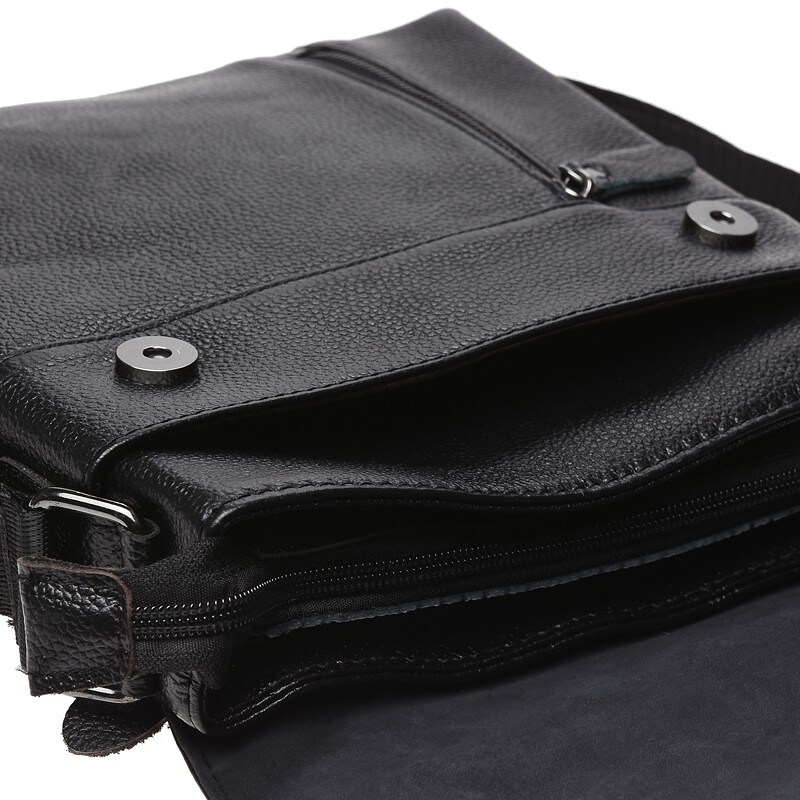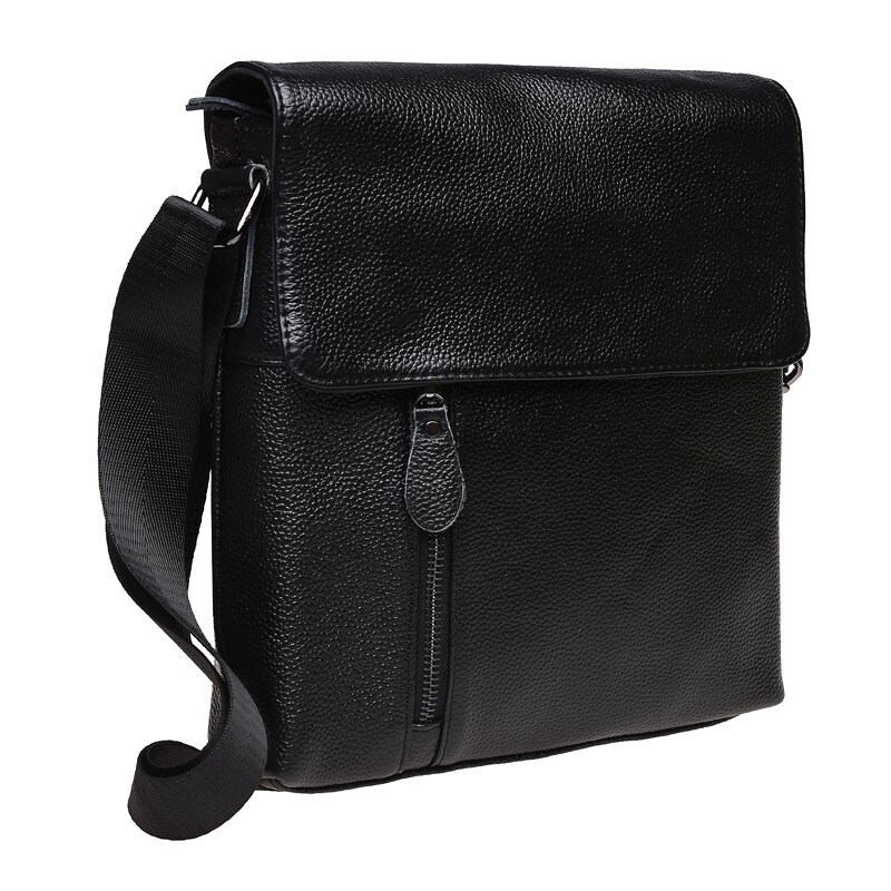 Чоловіча сумка середнього розміру, виготовлена з натуральної шкіри. Дозволяє зберігати всі необхідні речі та аксесуари. Має основне відділення і кілька додаткових кишень. Для носіння сумки передбачений регульований плечовий ремінь. Основний відділ закривається на клапан з магнітними кнопками. Підкладка текстиль.
