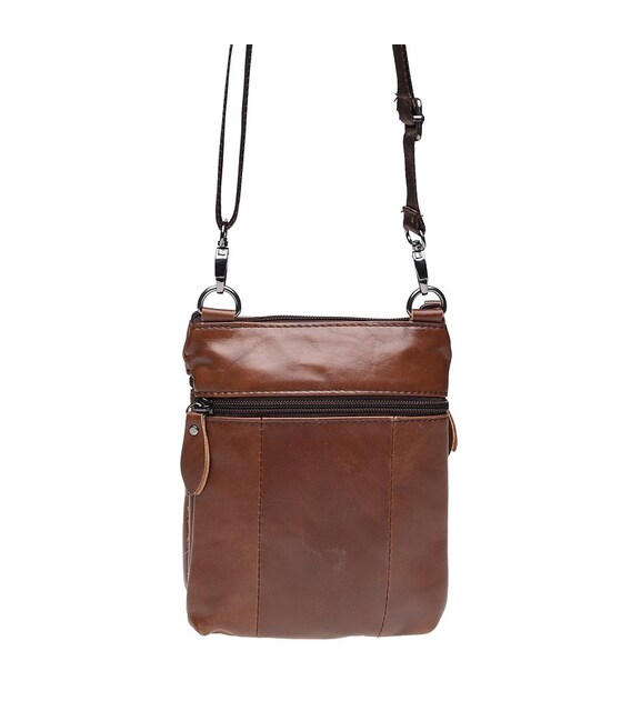 Дана модель шкіряної сумки закривається на блискавку. Має 1 основне відділення і 3 кишені всередині. Зовні-3 кишені на блискавці. Підкладка-текстиль. В комплекті-знімний плечовий ремінь.