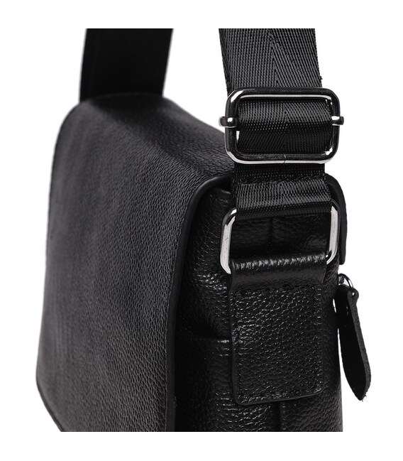 Дана модель чоловічої сумки закривається на клапан. Всередині є 1 основне відділення на блискавці, в якому розташовані 3 кишені. Зовні-1 кишеня на блискавці і 1 накладна кишеня. Підкладка-текстиль. Плечовий ремінь регулюється по довжині.