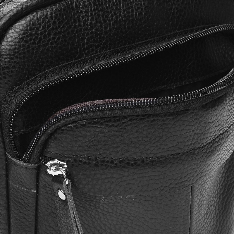 Сумка має 1 выддыл, який закривається на блискавку. Усередині 1 кишеня на блискавці. З лицьового боку-1 накладна кишеня і 1 кишенька на блискавці. З тильного боку-горизонтальний кишеню на блискавки. Підкладка текстиль. Колір фурнітури срібло. Плечовий ремінь регулюється по довжині.