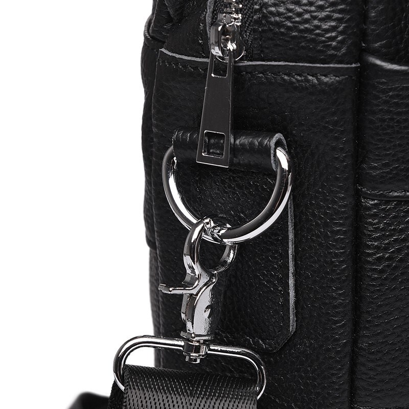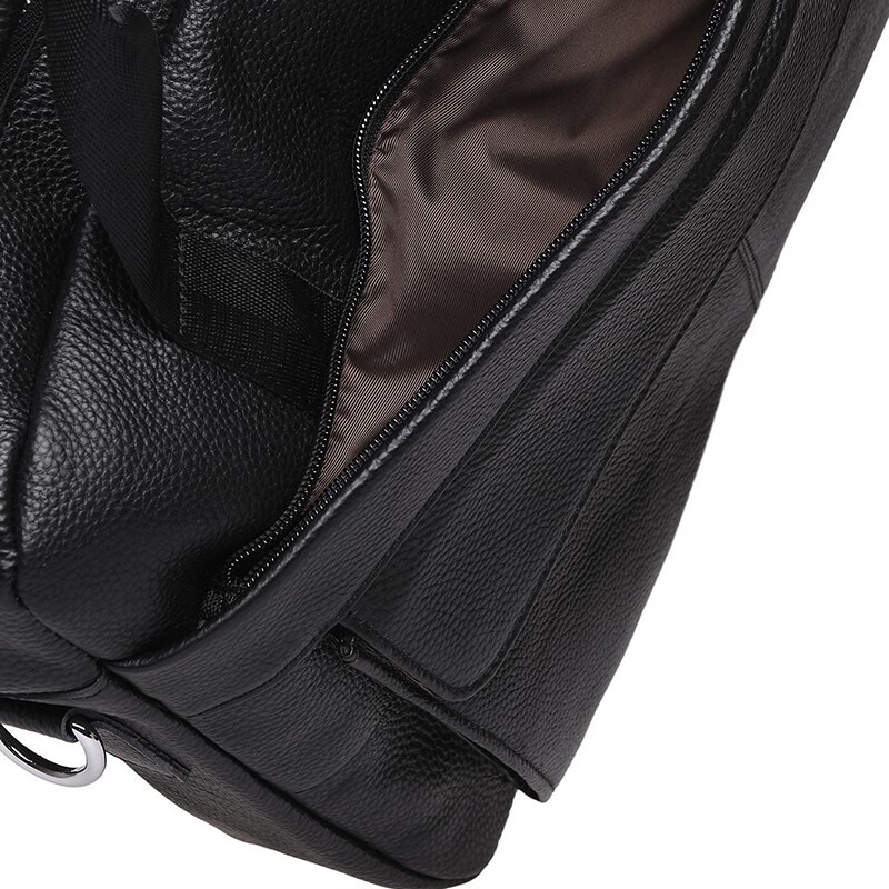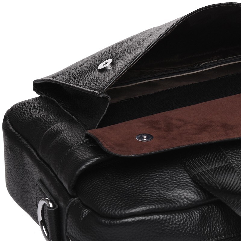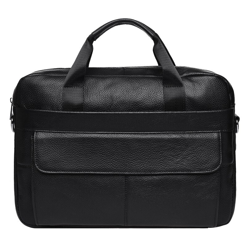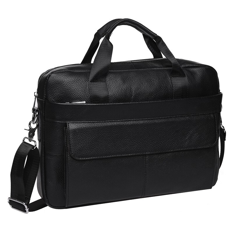Стильна шкіряна сумка для справжніх чоловіків! Зручна і легка, вміщує ноутбук, документи, гаманець та інші необхідні речі діловому чоловікові. Головне відділення закривається на блискавку. Усередині 2 відділа і 3 місткі кишені. З лицьового боку сумки 2 кишені різного розміру і з тильної сторони 1 глибоку кишеню на блискавці. Фурнітура металева. Підкладка - текстиль. В комплекті знімний плечовий ремінь.