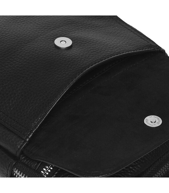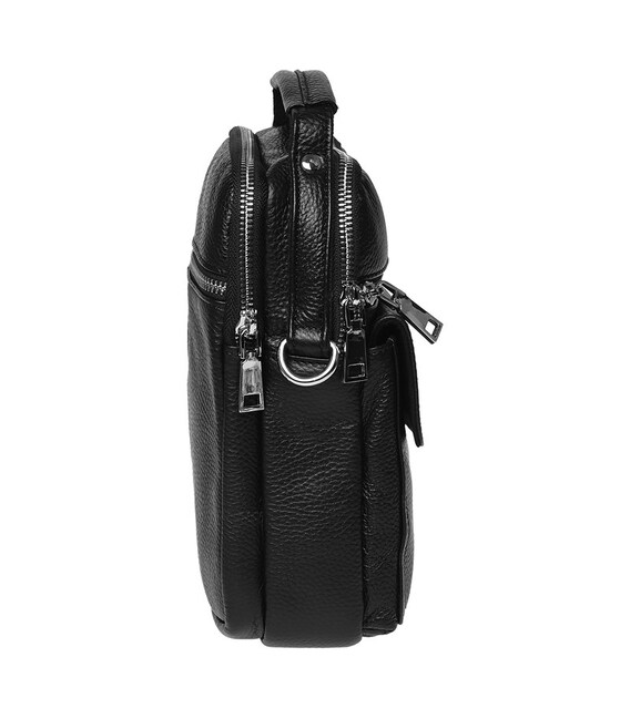 Універсальна модель чоловічої барсетки. Має 2 основних відділення на блискавці. Усередині 2 кишені для телефону і дрібниць. Зовні 2 кишені на блискавці і 1 накладна кишеня з клапаном з лицьового боку. Підкладка текстиль. В комплекті знімний плечовий ремінь.