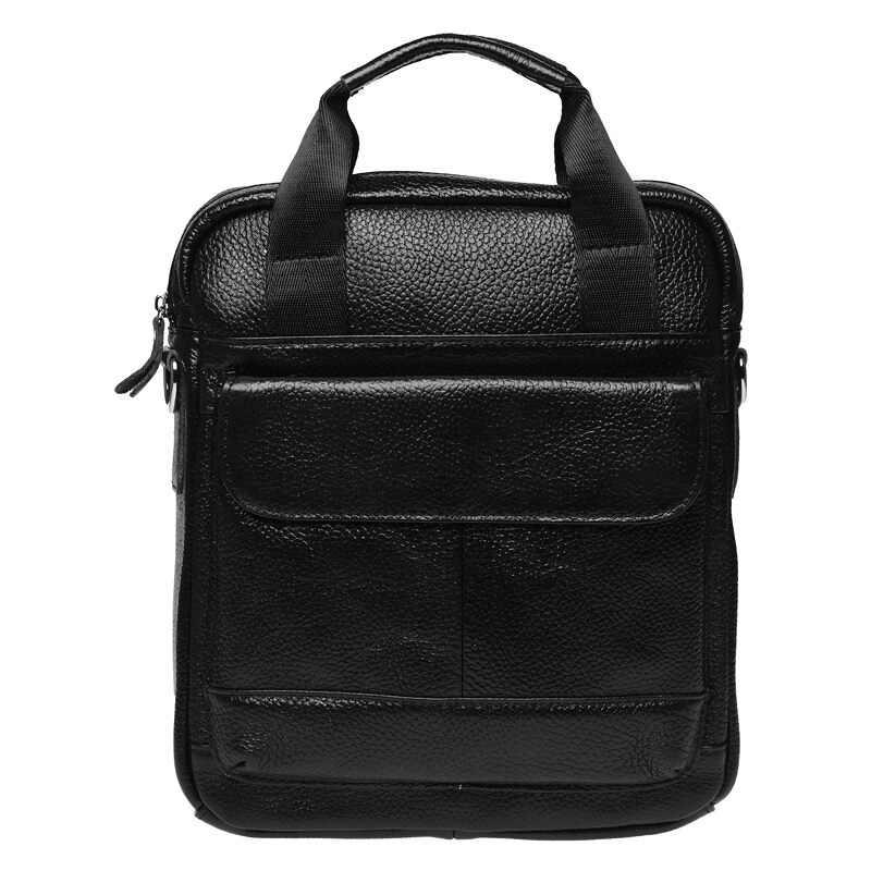 Чоловіча шкіряна сумка виконана з натуральної шкіри. Цю модель можна носити в руках і на плечі. Має 1 основне відділення на блискавці. Всередині 3 кишені. Зовні 1 накладна кишеня на кнопках і 1 кишеня на блискавці. Підкладка: текстиль. Колір фурнітури чорний. В комплекті знімний плечовий ремінь.