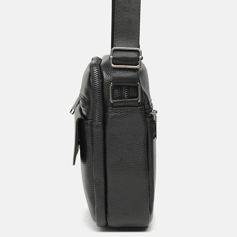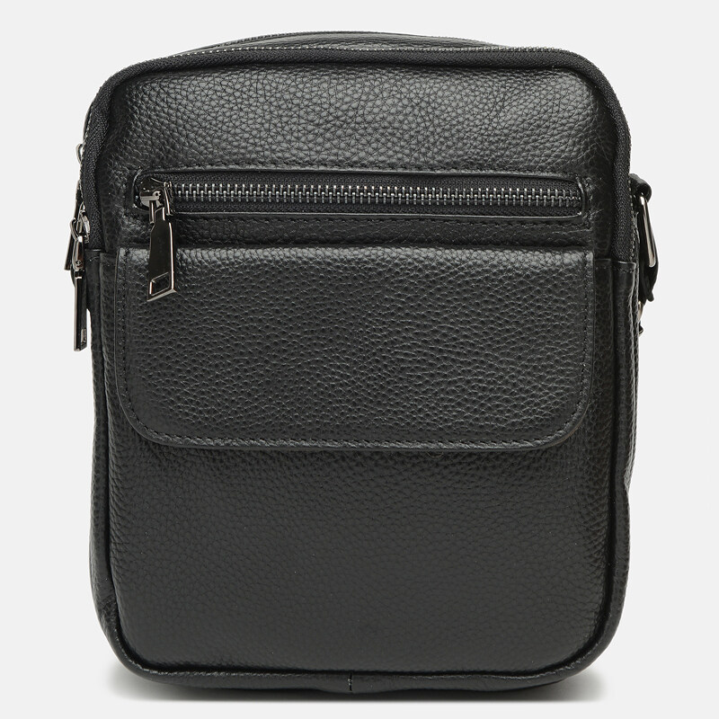 Чоловіча шкіряна сумка виконана з натуральної шкіри. Закривається на блискавку. Має 2 відділення. Усередині 1 кишеня на блискавці. Зовні 2 кишені на блискавці і 1 кишеня накладна на кнопці. Підкладка текстиль. Фурнітура-метал. Колір фурнітури-срібло.