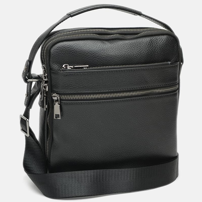 Чоловіча шкіряна барсетка- потрібний і практичний аксесуар для сучасного чоловіка. Ця сумка стильно виглядає, якісно зроблена і гармонійно виглядає з будь-яким одягом, а завдяки своїй функціональності є незамінним аксесуаром. Сумка має 2 отдленія на блискавках. Всередині 4 кишені для телефону та інших потрібних речей. Зовні сумки 3 кишені на блискавці. Підкладка - текстиль. Колір фурнітури - срібло. Має текстильний регульований ремінь і знімну ручку на кнопках.