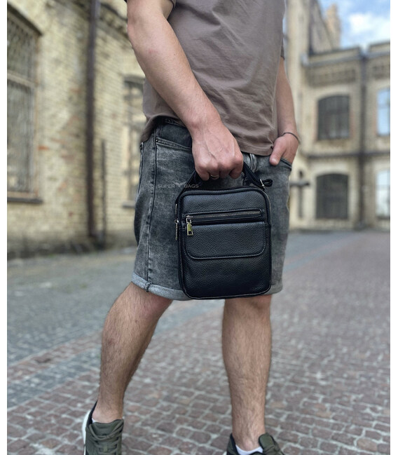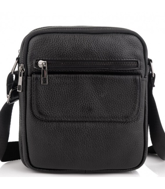 Шкіряна чоловіча сумка 17х21х5, барсетка через плече Tiding Bag 4134A чорна