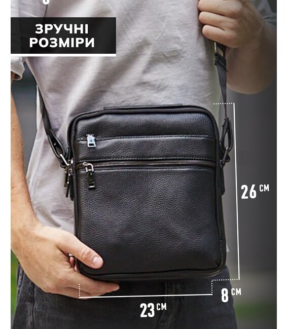 Шкіряна чоловіча сумка планшет через плече 23х26х8, наплічна барсетка Tiding Bag MN-284334 чорна