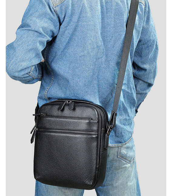 Шкіряна чоловіча сумка через плече чорна Tiding Bag MN-284334