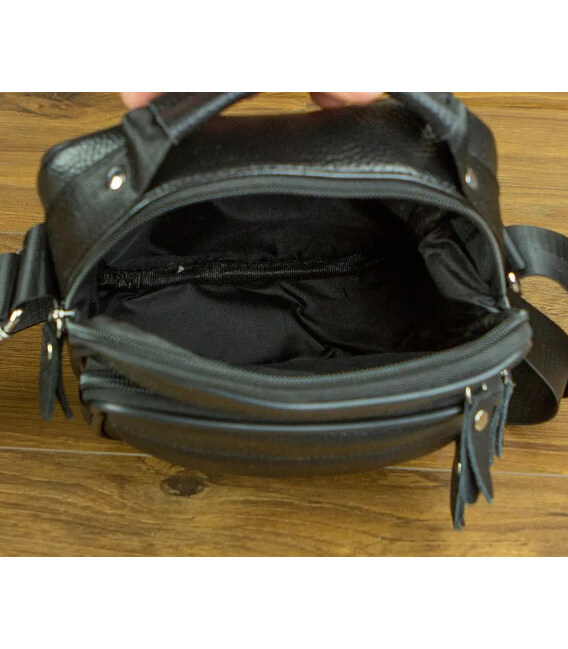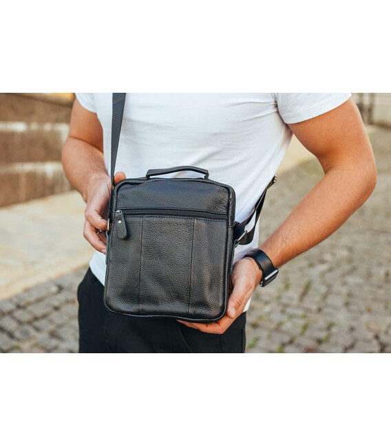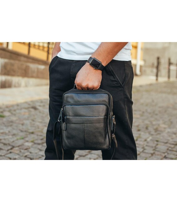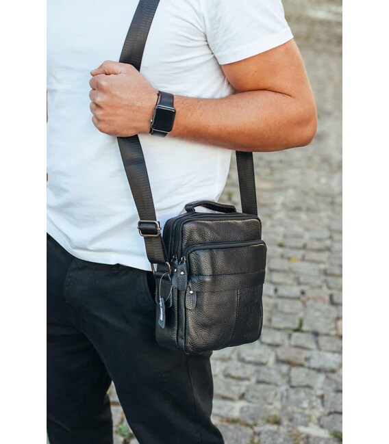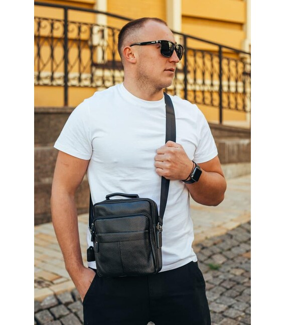Сумка через плече з натуральної шкіри 22х24х6 / месенджер для активного чоловіка, чорний