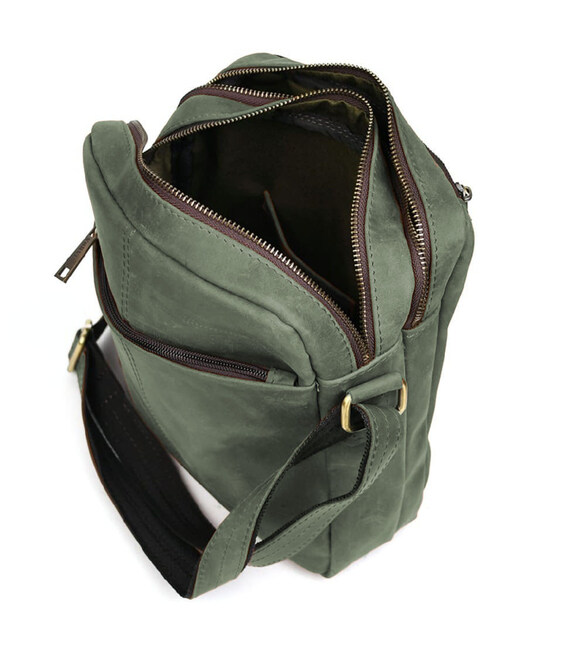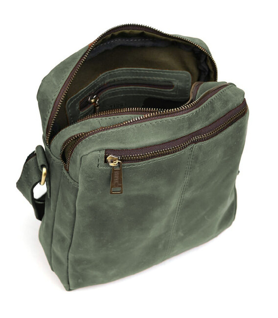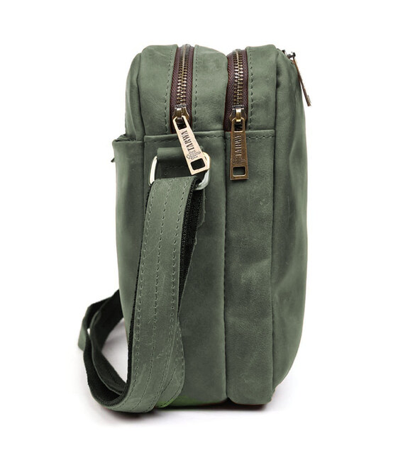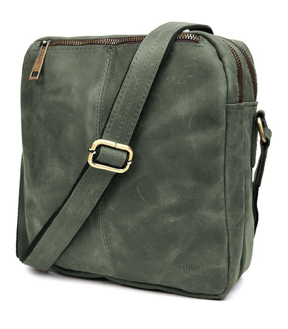 Сумка месенджер чоловіча вертикальна через плече TARWA Зелений RЕ-60121-3md: натуральна шкіра та металева фурнітура. Оптимальний розмір для повсякденного носіння. Зручний для зберігання планшета, портмоне, документів формату А5 та інших необхідних предметів.