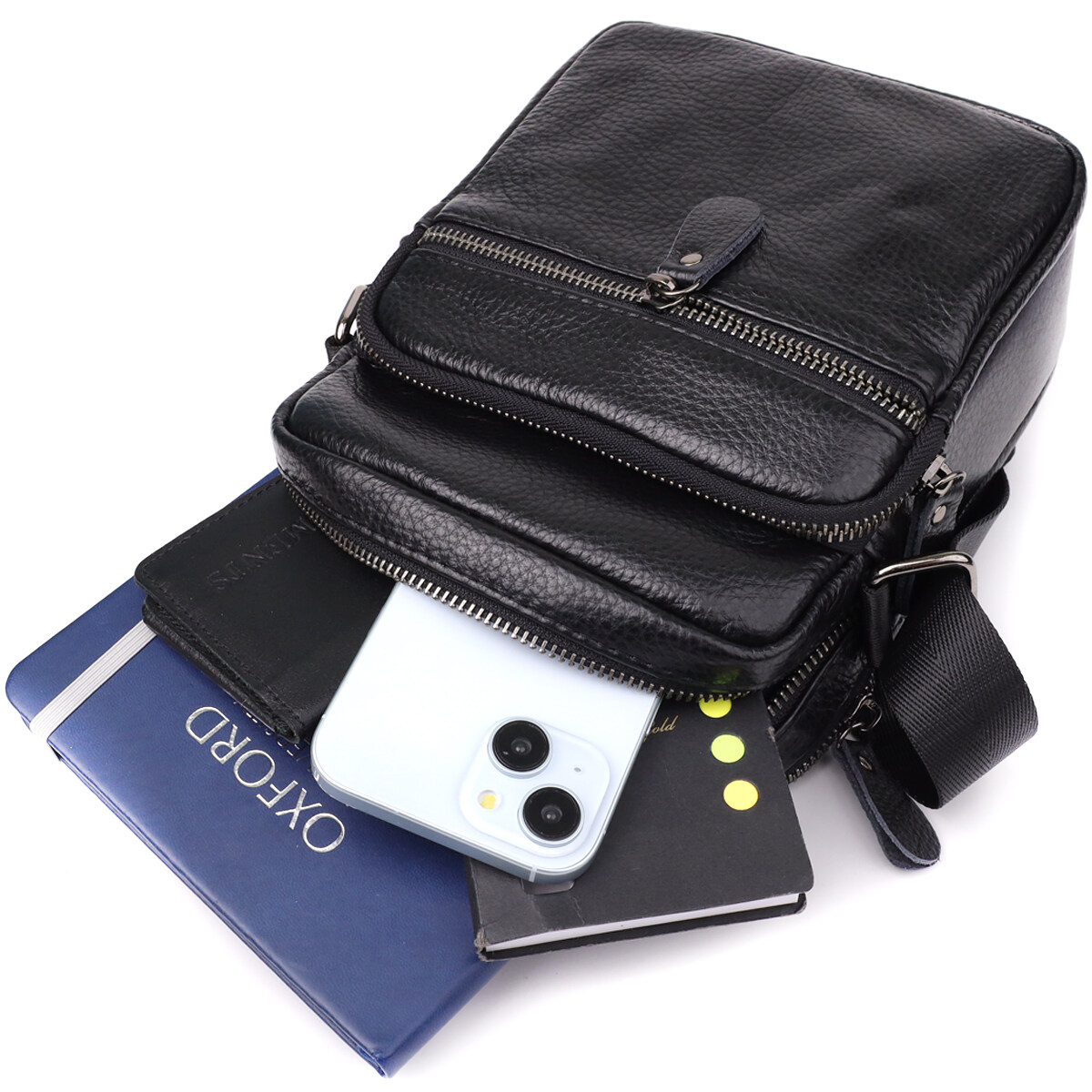 Регульований текстильний ремінець дозволяє носити сумку через плече з максимальним комфортом та адаптацією під індивідуальні уподобання.