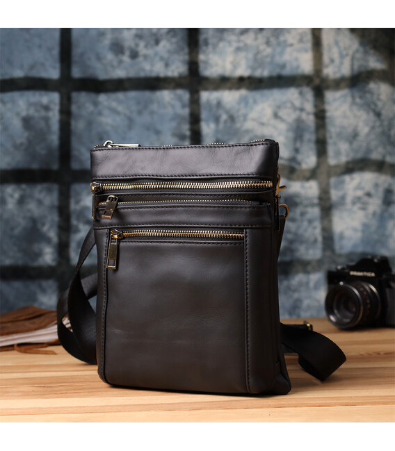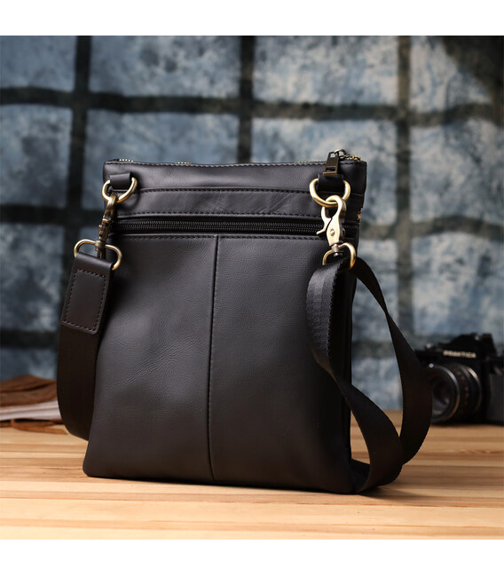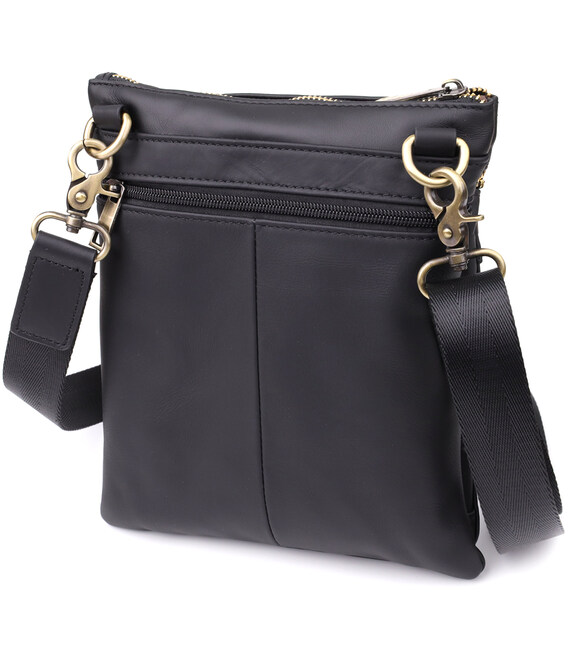 Чоловіча шкіряна сумка в чорному кольорі виготовлена з гладкої натуральної шкіри з благородним матовим блиском. Цей лаконічний та функціональний аксесуар поєднує у собі стриманий стиль та продуману ергономіку, ідеально підходячи для повсякденного використання у міському ритмі.