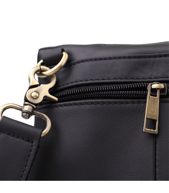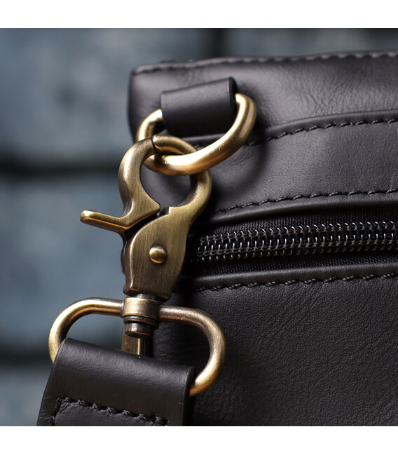Фурнітура виконана в кольорі "під латунь", що надає виробу благородного та чоловічого характеру. Сумка доповнена шкіряним ремінцем, що знімається, з регулюванням довжини, що дозволяє носити її як на плечі, так і через плече, забезпечуючи комфорт у русі.