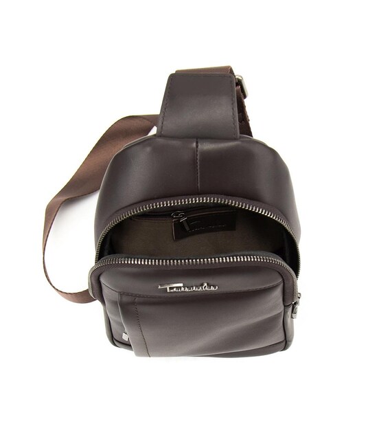 Чоловічий шкіряний коричневий слінг на плече Tavinchi TV-827C