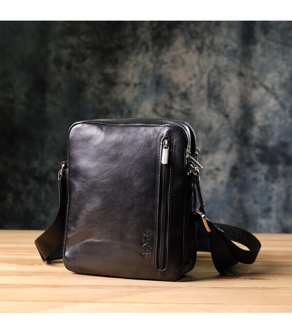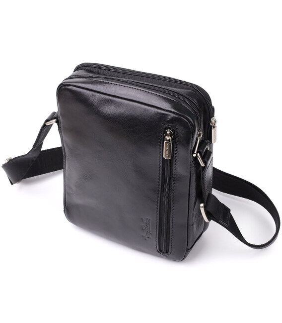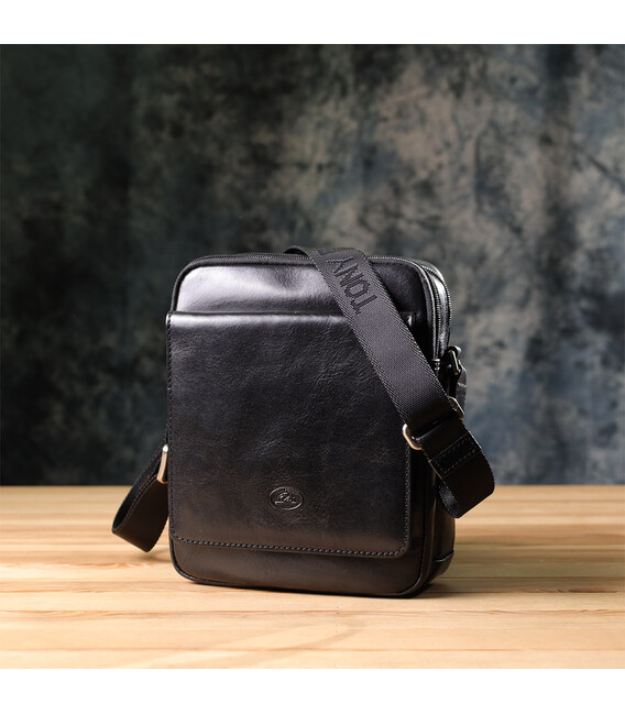 Відмінна чоловіча сумка з кишенями з гладкої натуральної шкіри Tony Perotti 20857_1 (9148-17 nero) Чорний