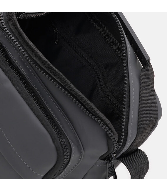 Чоловіча сумка виготовлена з міцного текстилю. Має 1 основне відділення на блискавці. Усередині сумки є одна кишеня на блискавці. З лицьового боку-2 кишені на блискавці, з тильної-1 кишеня на блискавці. Підкладка текстилю. Незнімний ремень регулюється по довжині.
