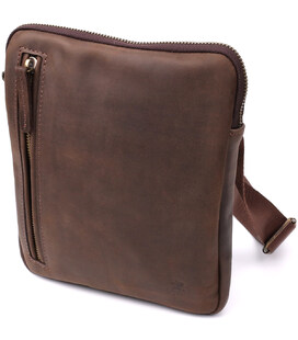 Стильна чоловіча вертикальна сумка SHVIGEL виконана з натуральної коричневої вінтажної шкіри, яка згодом набуває благородного відтінку та шарму. Компактний розмір та продумане внутрішнє наповнення роблять аксесуар практичним та зручним для повсякденного використання.
