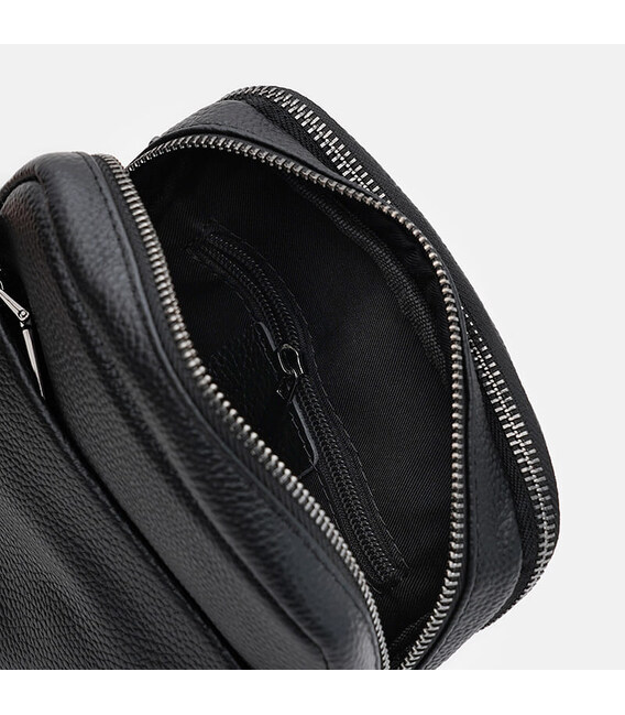 Чоловіча сумка виготовлена з якісної шкіри. Має 2 відділення на блискавках, усередині 1 кишеню на блискавці та 1 кишеню середнього розміру. З лицьового боку: 1 кишеня на блискавці, з тильною-1 кишеня на блискавці. Підкладка текстиль. Незнімний ремінь із текстилю.