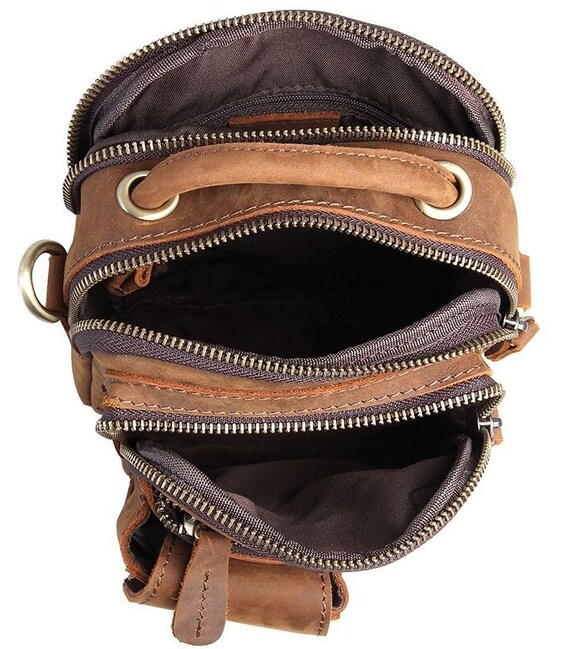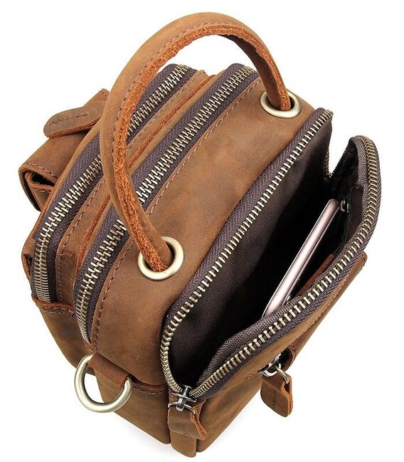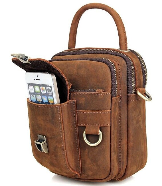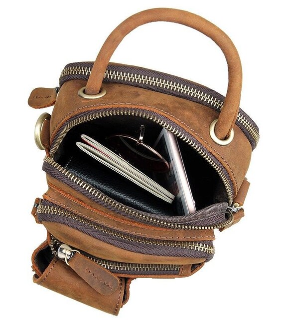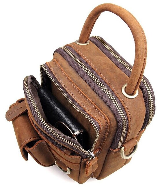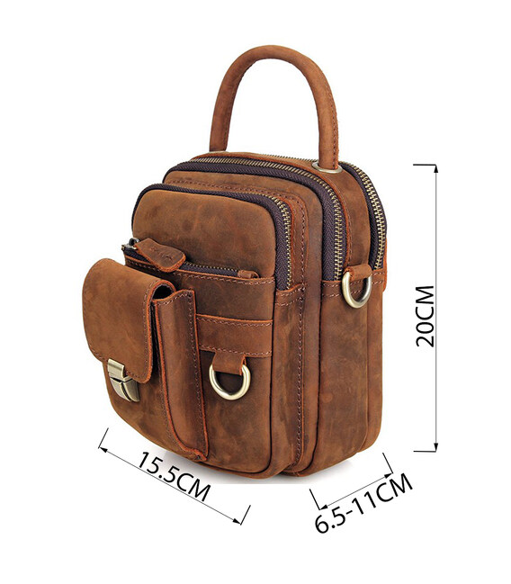 Шикарна, чоловіча багатофункціональна шкіряна сумка барсетка. Колір фурнітури: латунь. Аксесуар має два основних, автономних відділення на блискавках. В одному з цих відділень знаходиться потайна кишеня на блискавці. Сумку можна переносити в руці за допомогою шкіряної ручки, а також через плече (в комплектіплечовий ремінь, що знімається). Аксесуар упакований в текстильний пилозахисний чохол білого кольору.