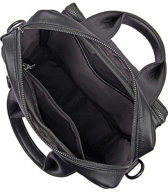 Зручна сумка з натуральної високоякісної шкіри чорного кольору. Таку багатофункціональну сумку можна носити в руці, а також через плече. Колір фурнітури цього виробу: чорне срібло. Сумка виглядає дуже модно і дорого. Не дивлячись на свої досить компактні розміри, дана модель надзвичайно містка і зручна у використанні. Аксесуар упакований в текстильний пилозахисний чохол білого кольору.