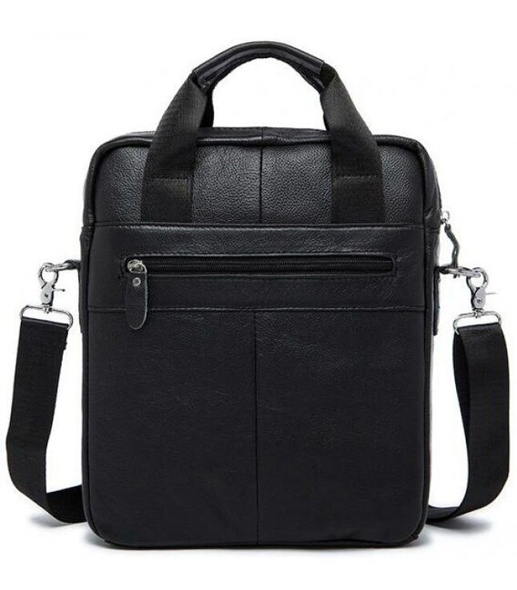 Сучасна чоловіча сумка через плече. Аксесуар виконаний з натуральної високоякісної зернистої шкіри. Колір фурнітури: срібло. Сумка надійно прошита міцною ниткою. Шви - рівні, акуратні.