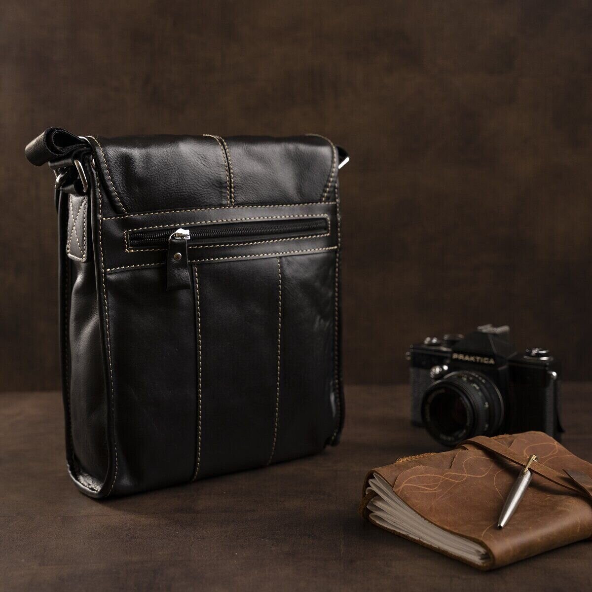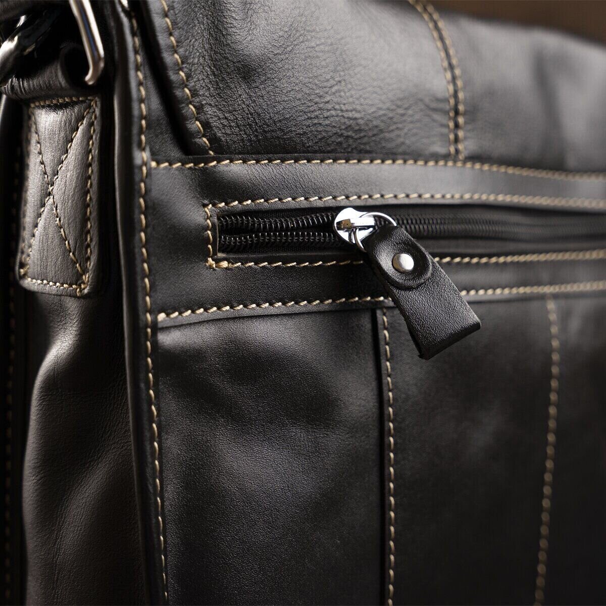 Містка сумка для справжніх чоловіків в гладенькій шкірі чорного кольору. Сумка має особливий дизайн, який виділить вас з натовпу і додасть більше строгості і солідності вашому стилю. Сумка доповнена якісною фурнітурою. Дизайн самої моделі продуманий до всіх дрібниць. Аксесуар упакований в тканинний чохол. Така сумка стане найпрекраснішим подарунком для будь-якого чоловіка. Зверніть увагу, що сумка виконана в глянцевій блискучій гладкій шкірі.
