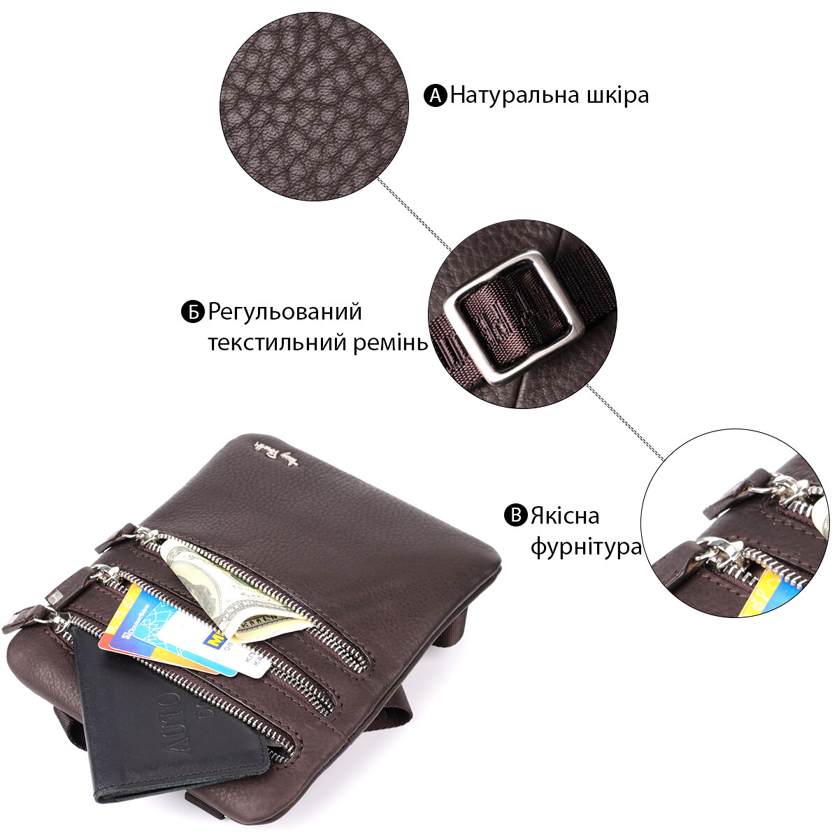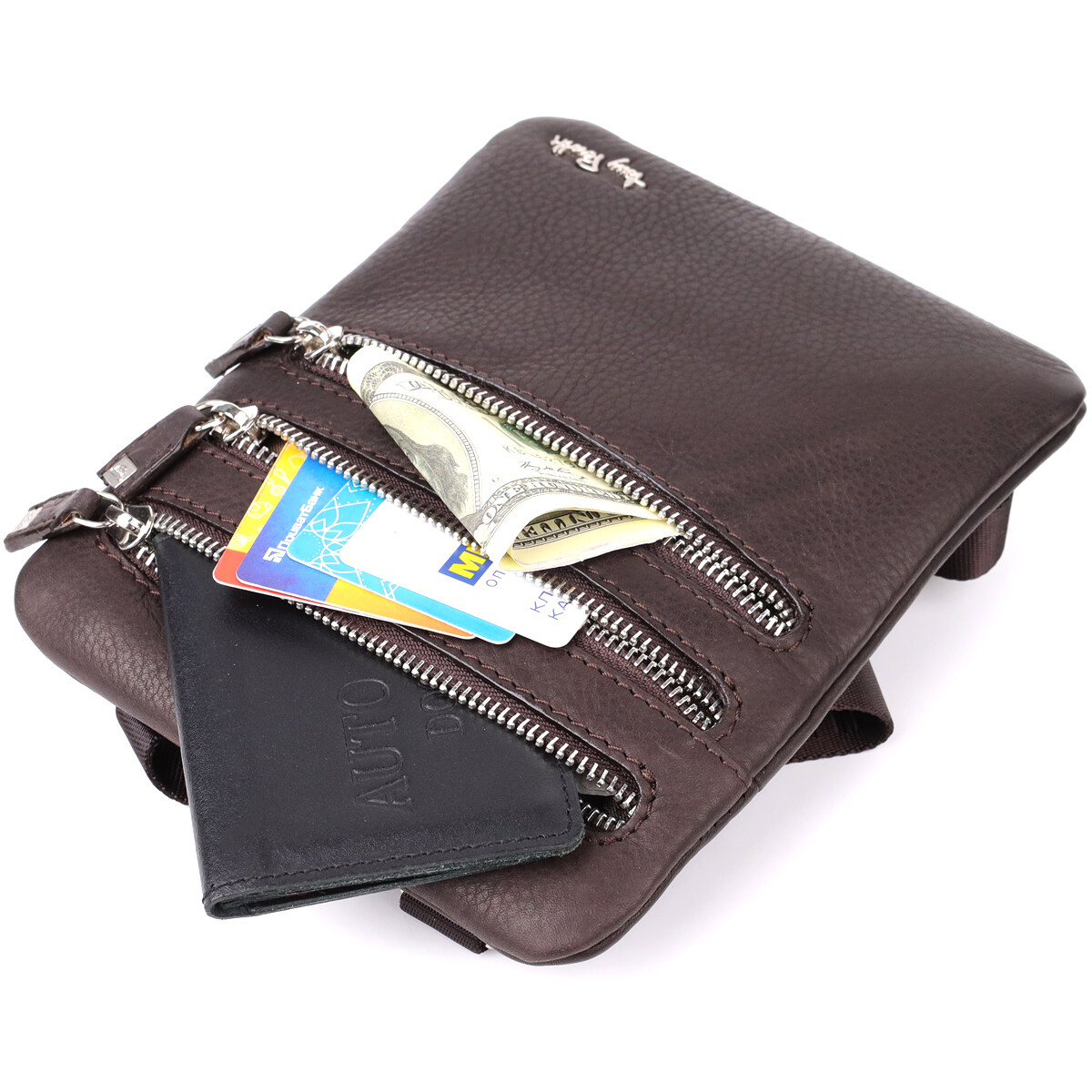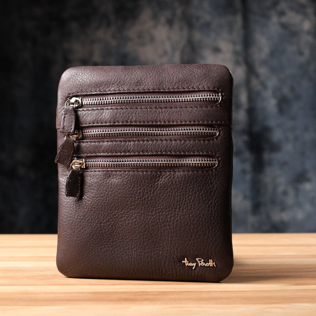 Невелика шкіряна сумка через плече Tony Perotti – практичний та стильний аксесуар для повсякденного використання та ділових завдань. Модель виготовлена з натуральної шкіри високої якості в елегантному коричневому кольорі, що підкреслює класичний характер виробу.