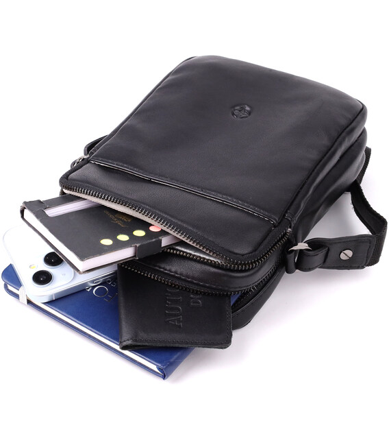 Вертикальна чоловіча сумка через плече з натуральної шкіри Tony Perotti 20883_1 (6049 nero) Чорний