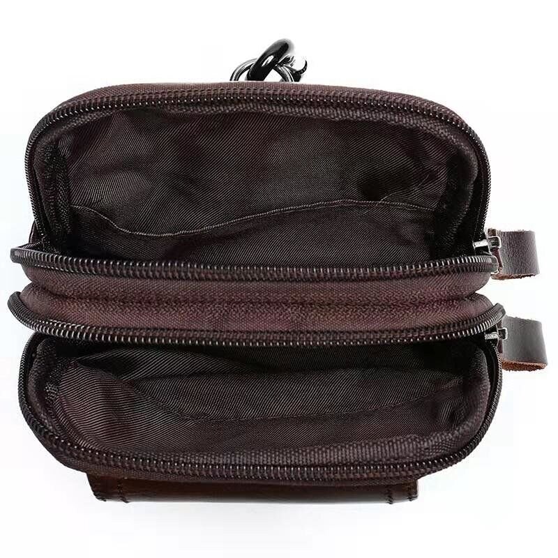 Компактна і функціональна сумка для чоловіків. Її особливістю є те, що ви можете носити її на ремені, на плечі в руках або як бананку. Аксесуар виконаний з натуральної шкіри м'якої і приємної на дотик. Усередині сумки текстильна підкладка коричневого кольору. Регульований ремінь зйомний і додатковий карабін забезпечать вам зручність і комфорт з такою сумкою. Модель ідеально підійде в поїздку або для тих, хто багато часу проводить за кермом. Така модель здатна замінити барсетку і при цьому менше важить. Сумка буде прекрасним подарунком для близької людини. Аксесуар упакований в тканинний мішок.