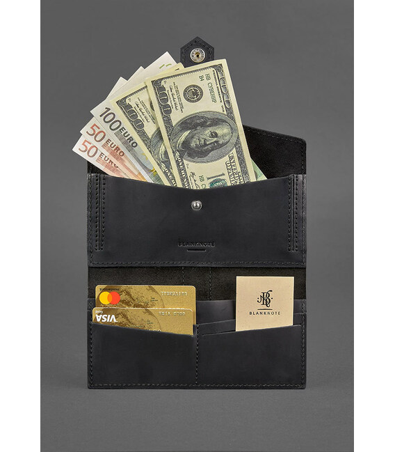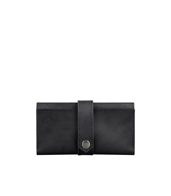 Стильне портмоне в чорному кольорі, яке можна використовувати в якості клатча. Виготовлено з натуральної шкіри Crazy Horse. Вона має дуже приємну матову поверхню і вміє красиво старіти: з часом виріб набуває дуже вінтажний вид.