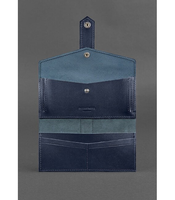 Стильне портмоне в темно-синьому кольорі, яке можна використовувати в якості клатча. Виготовлено з натуральної шкіри Krast. Поверхня цієї шкіри стійка до подряпин і потертостей.