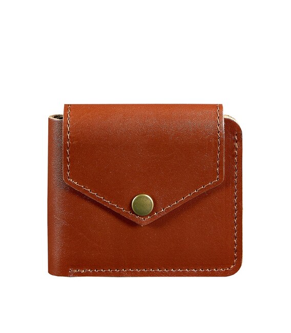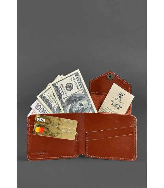 Шкіряне портмоне 4.2 на кнопці світло-коричневе