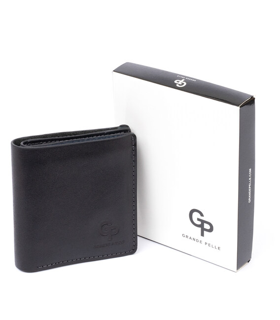 Вертикальне глянсове портмоне з накладною монетницьою GRANDE PELLE 11329 Чорне