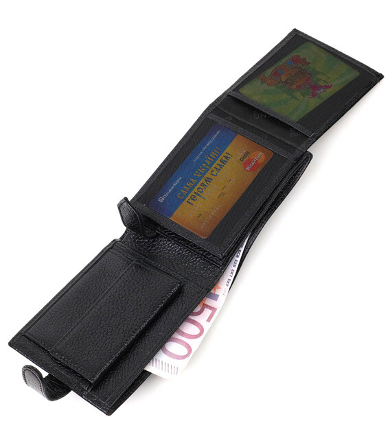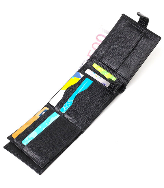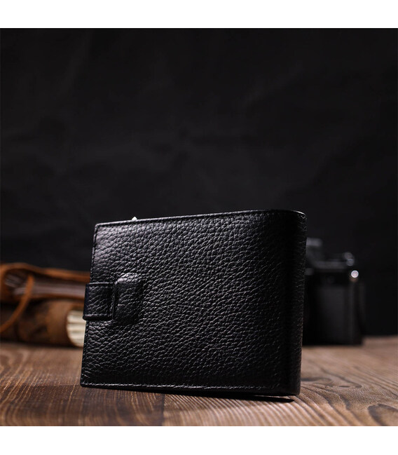 Горизонтальне портмоне для чоловіків з натуральної зернистої шкіри BOND 22059 Чорний
