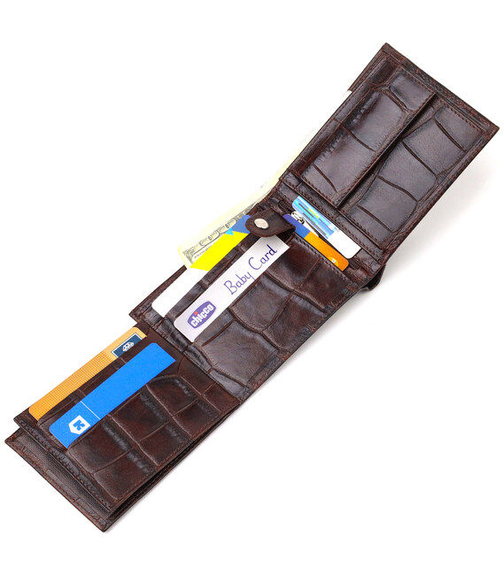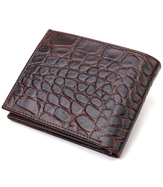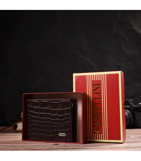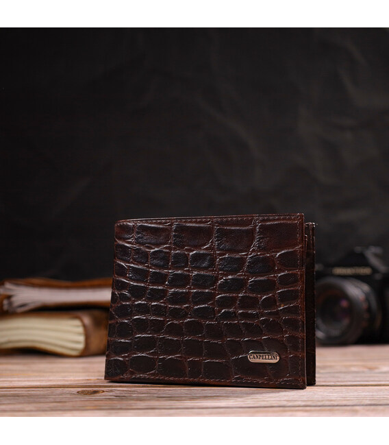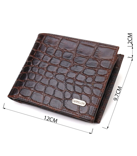 Детальніше Модний горизонтальний чоловічий гаманець середнього розміру з натуральної шкіри з тисненням під крокодила CANPELLINI 21865 Корич