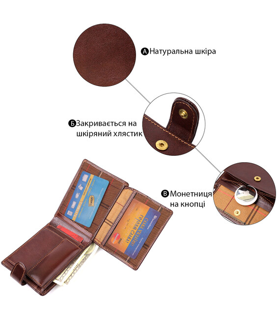 - виготовлений з натуральної гладкої шкіри, прошитою коричневою ниткою по краях;