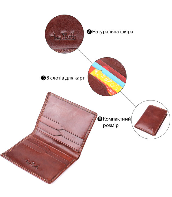 Невелике портмоне Tony Perotti у дві складові поєднує компактність, функціональність та преміальний стиль. Продумана внутрішня організація дозволяє зручно зберігати купюри, монету та карти. Фірмова брендована фурнітура та тиснений логотип на лицьовій та внутрішній сторонах підкреслюють високу якість та елегантність виробу.