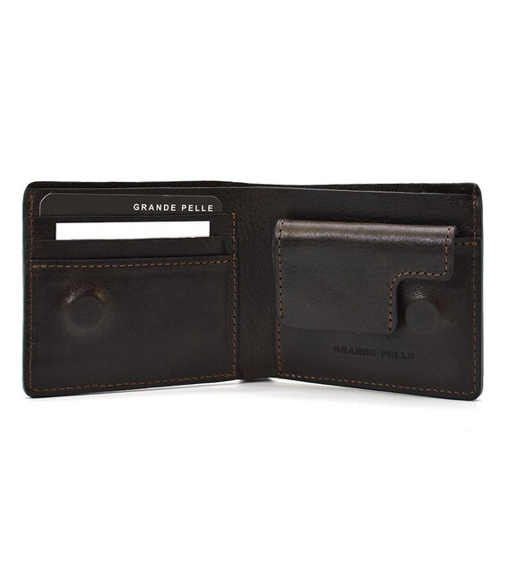 Портмоне на магнітній застібці Grande Pelle 505620 глянцева шкіра шоколад