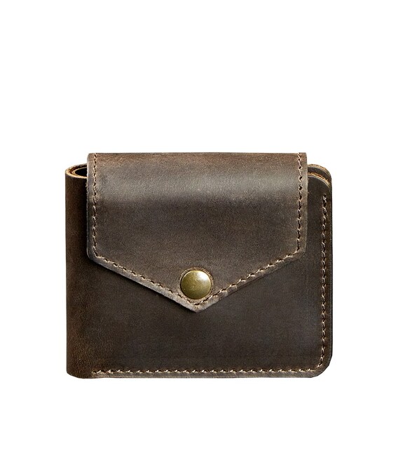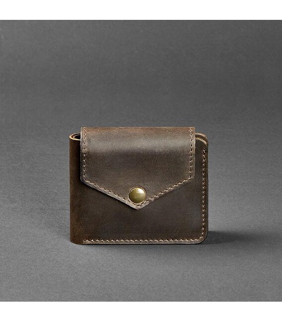 Шкіряне портмоне 4.2 на кнопці темно-коричневе Crazy Horse