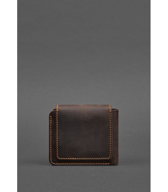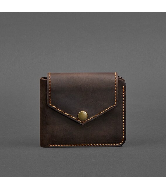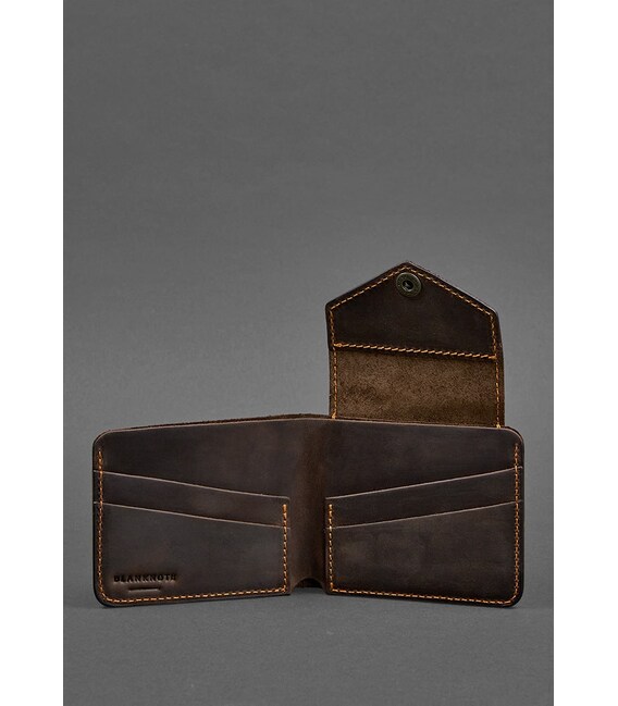 Детальніше Шкіряне портмоне 4.2 на кнопці темно-коричневе з помаранчевої ниткою