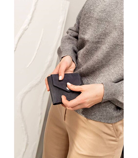 Класична модель - стильний компактний портмоне з невеликим відділенням для монет. Всередині є одне відділення для купюр і 4 відділення для кредитних карт і візиток. Портмоне закривається на клапан, який формує невелику монетницю, закривається на кнопку із зовнішнього боку виробу. Підходить для будь-яких купюр, в тому числі - для євро і доларів.