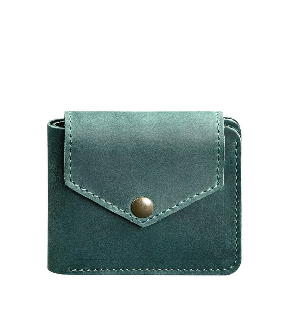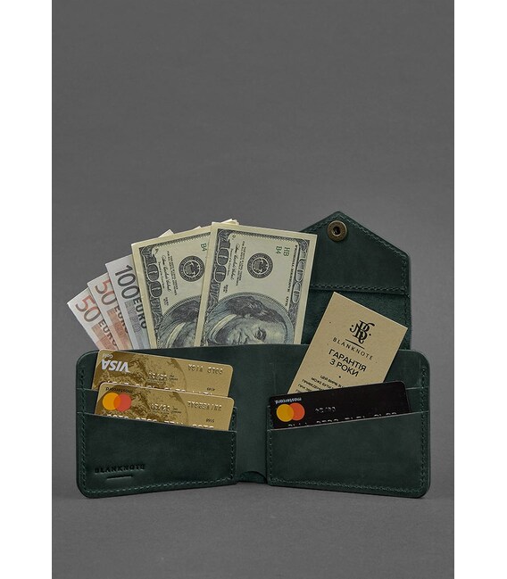 Шкіряне портмоне 4.2 на кнопці зелене Crazy Horse