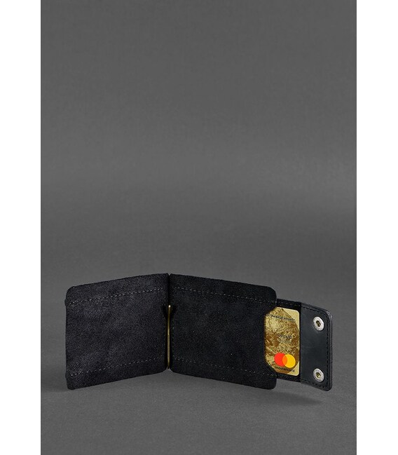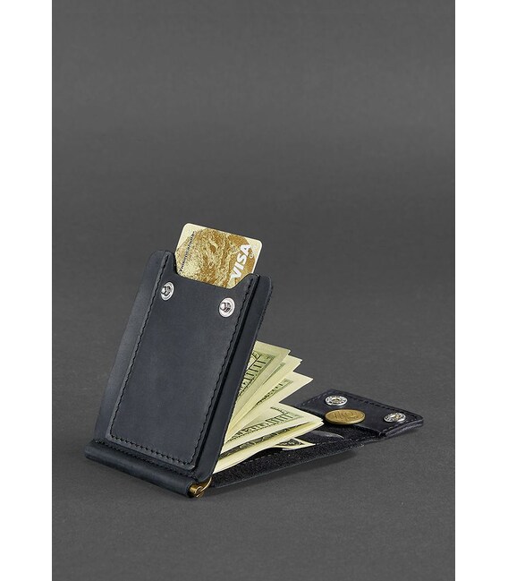 Чоловіче шкіряне портмоне чорне 10.0 затиск для грошей Crazy Horse