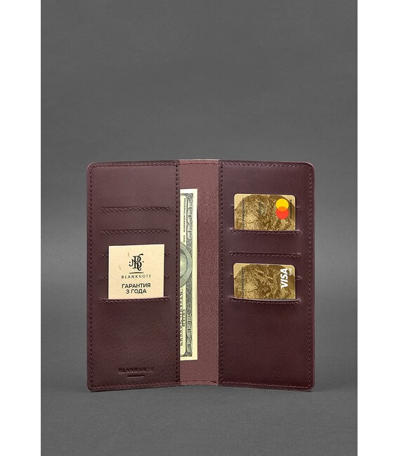 Шкіряне жіноче портмоне-купюрник в кольорі марсала сподобається дамам, які люблять стильні і лаконічні аксесуари. Таке портмоне можна використовувати як міні-клатч - воно відмінно виглядає в руці. Виготовлений аксесуар повністю вручну з натуральної шкіри.