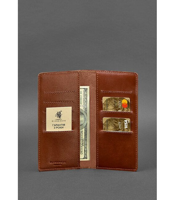 Усередині аксесуара є два просторих відділення для купюр, а також 10 прорізних кишень для платіжних і дисконтних карток.