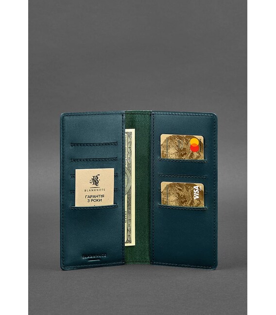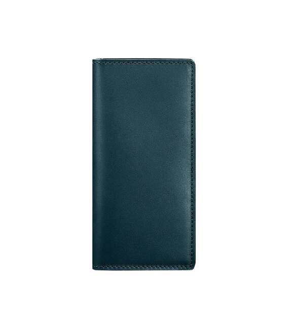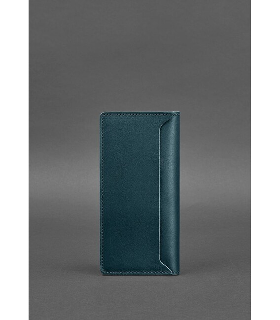 Стильне вертикальне портмоне з натуральної шкіри в зеленому кольорі. Аксесуар виглядає дуже солідно і добре лежить в руці. Портмоне вироблено повністю вручну, акуратно прошито надміцною ниткою зеленого кольору.