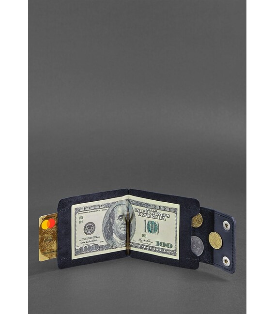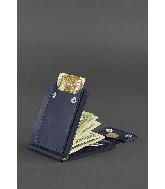 Чоловіче шкіряне портмоне синє 10.0 затиск для грошей Crazy Horse