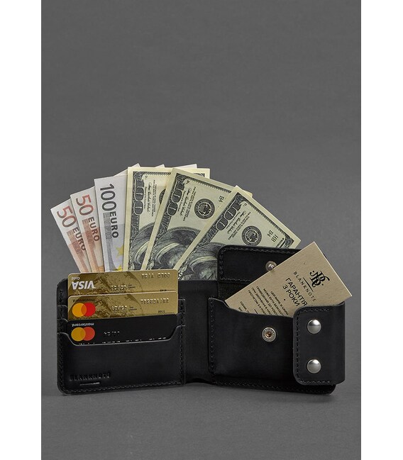 Чоловіче шкіряне портмоне Zeus 9.0 чорне Crazy Horse