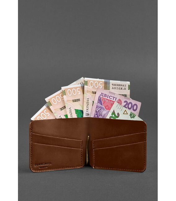 Шкіряне портмоне 4.4 (з затиском) світло-коричневе — відмінний вибір для тих, хто шукає стильне та практичне рішення для зберігання кредитних карток та готівки. Виготовлений з високоякісної шкіри, він забезпечує тривалість та елегантний зовнішній вигляд. Усередині гаманця є чотири кишені для кредитних або дебетових карток, які забезпечують безпечне та організоване зберігання. Відділення для банкнот розташоване в центрі гаманця та дозволяє зручно розмістити купюри різних номіналів. Також є зручний затиск для купюр, який допомагає зберегти гроші в безпеці та уникнути їх випадкового випадання. В цілому, цей шкіряний гаманець — ідеальний аксесуар для організації ваших фінансових засобів та привабливий елемент для вашого повсякденного стилю